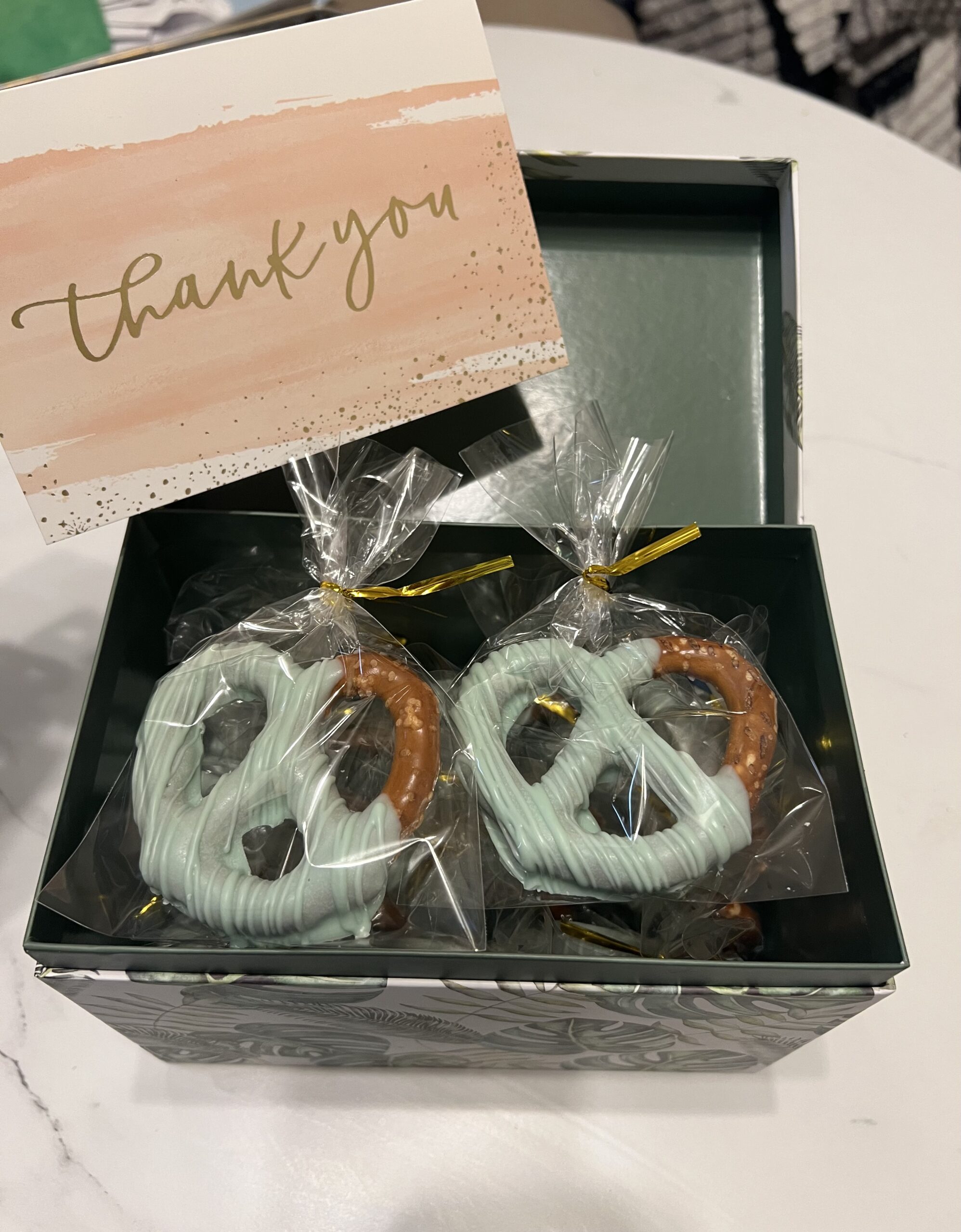 A sweet and salty delight, featuring our gourmet pretzels dipped in smooth, creamy chocolate.